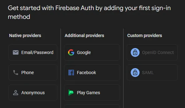 In this tutorial, we are only going to be working with email and password, but if you’re interested you should try implementing Google SSO as well.