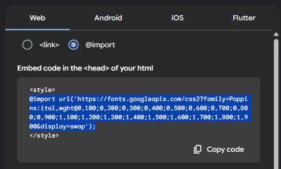 Now we have successfully imported Poppins into our project. Try importing another font called Inter on your own! Note that for the styling, we will provide the code for the regular and semibold font styles.