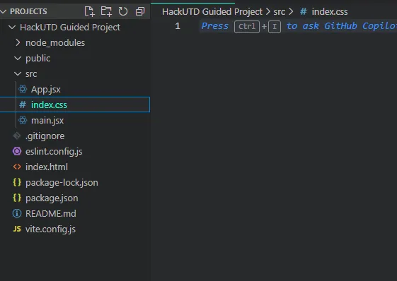 index.cssfile found in the./srcfolder that should already be empty. Now we can just copy and paste these three lines into it.- If you see squiggly lines, you can ignore those.